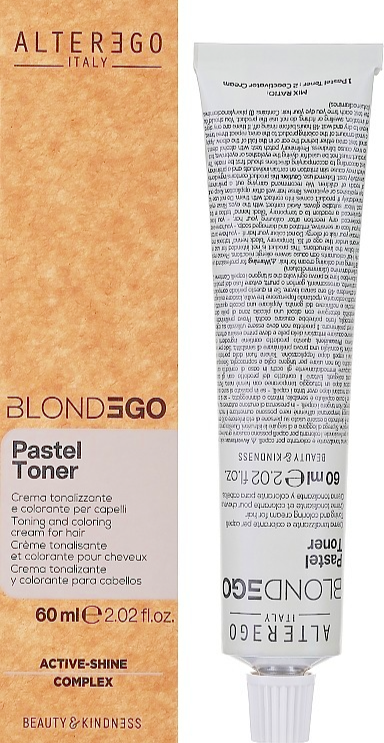 Alter Ego BlondEgo Pastel Toner is a professional demi/permanent toning color designed specifically for pre-lightened blonde hair. It deposits soft pastel pigments (like lilac, pink, peach, or mint) while refining and neutralizing underlying tones.