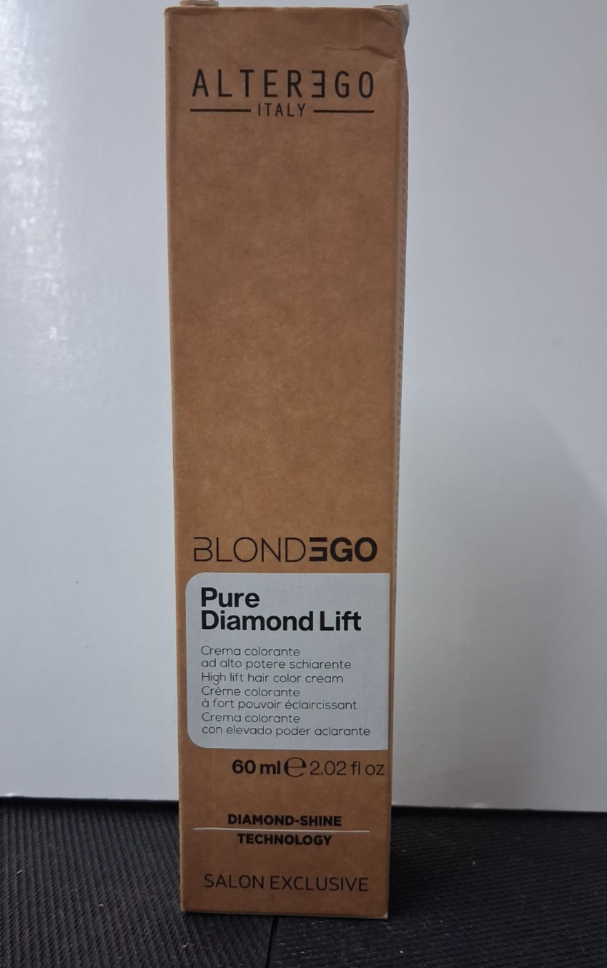 Alter Ego BlondEgo Pure Diamond Lift is a professional high-lift color cream formulated to lighten natural hair while simultaneously toning and conditioning it. It is part of the Blondego line, designed for achieving clean, luminous blonde shades without excessive damage.