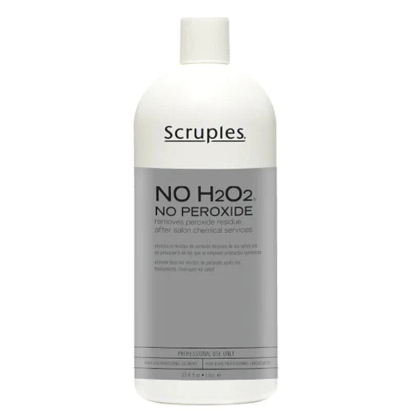 • Scruples No H2O2 No Peroxide is a professional salon product designed to remove and neutralize peroxide residue left in the hair after salon chemical services that use peroxide (such as coloring, bleaching, or perming).